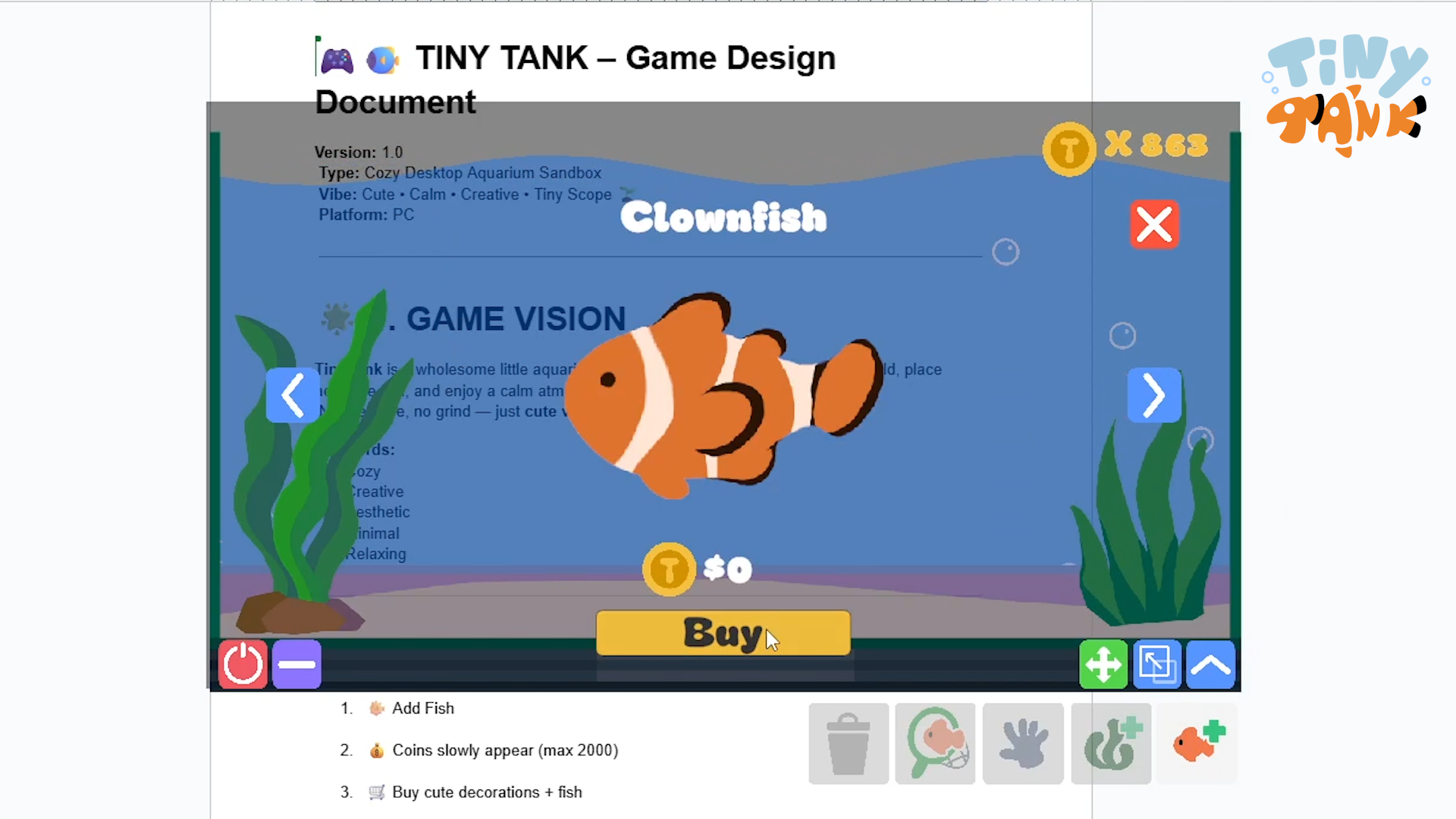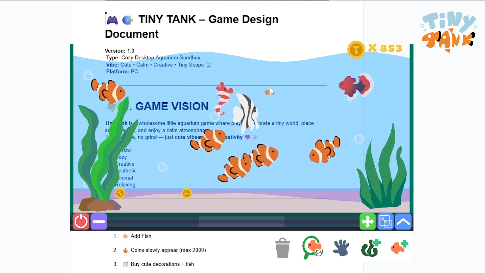 TinyTank – A Cozy Aquarium Desktop Decoration Game